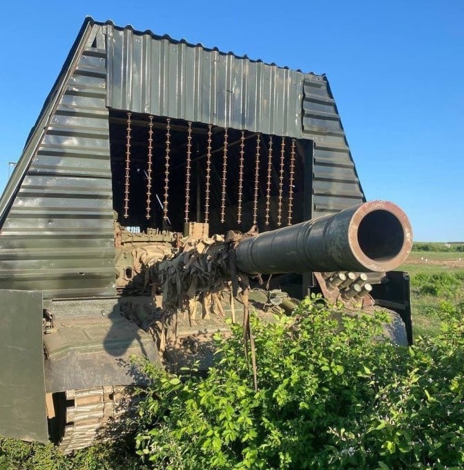 На днях колонна российской бронетехники вышла из-под Марьинки на Красногоровку, чтобы доставить подкрепление в город, где идут бои. Во главе шел обыкновенный танк, за ним — четыре обшитых металлом «танка-черепахи», на которых укрывалась пехота. Они прошли около 7 км вдоль ж/д путей.