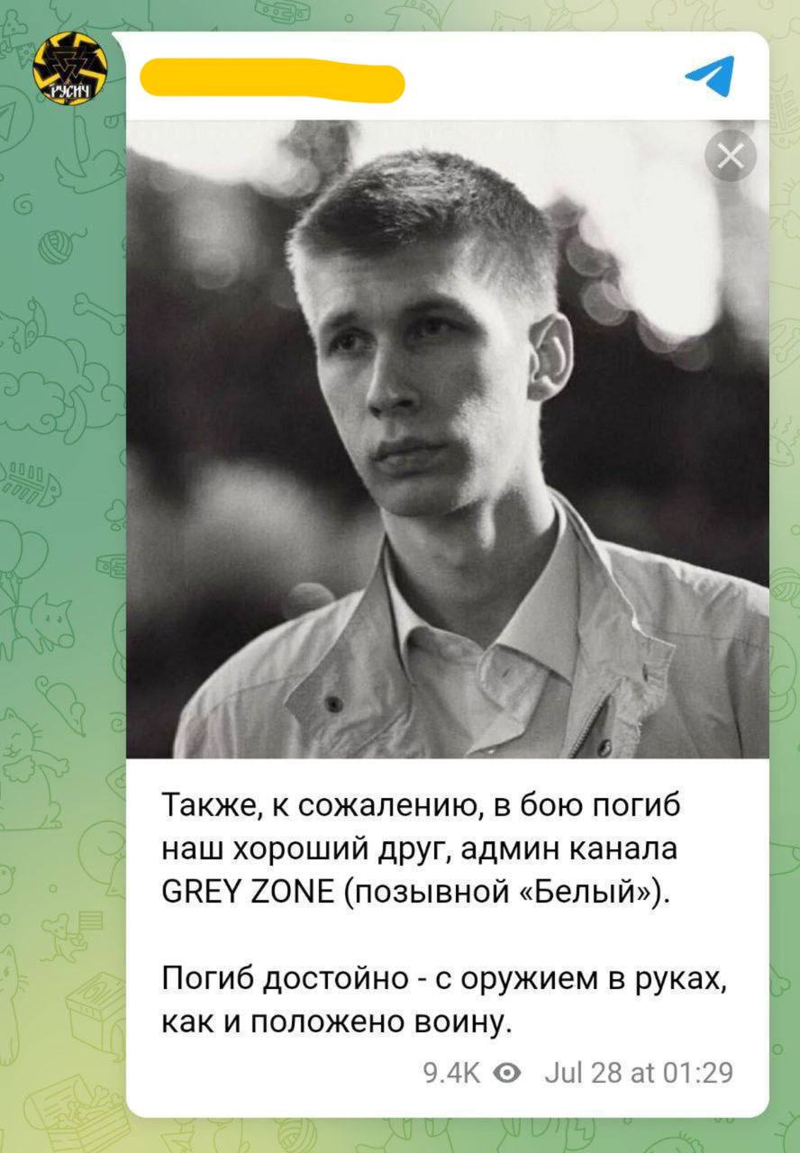 Сообщается, что в колонне был и автор российского телеграм-канала Grey Zone с 535 тысячами подписчиков, неформального рупора ЧВК «Вагнер». Этот канал с 2022 года играл важную роль в разжигании ненависти к украинцам, был одним из самых кровожадных.