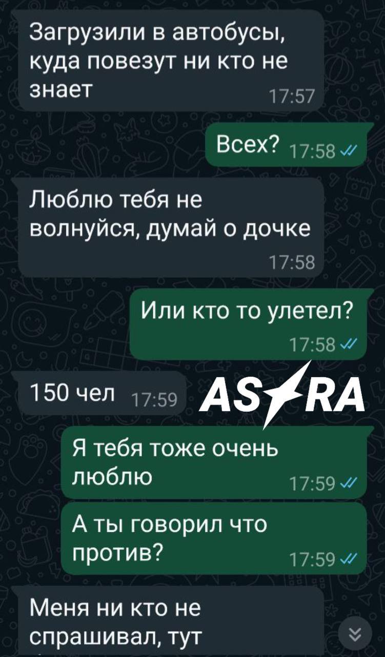 По словам близких, вчера около 6 вечера они получили от находившихся там мужчин сообщение, что их внезапно вызвали на построение, а затем, ничего не объясняя, посадили в КАМАЗы и под охраной увезли на военный аэродром.