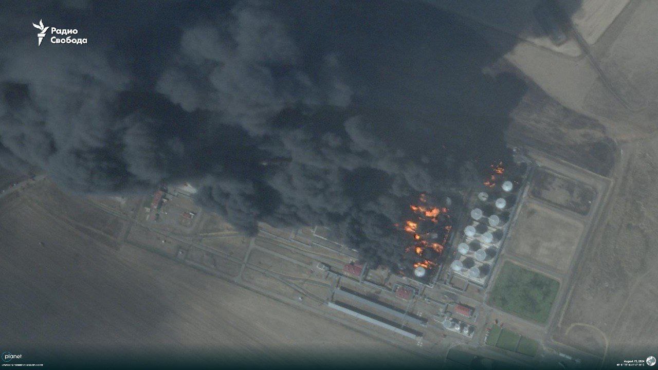 В Ростовской области РФ уже вторые сутки горит нефтебаза в Пролетарске, которую Силы обороны Украины атаковали в ночь на 18 августа.