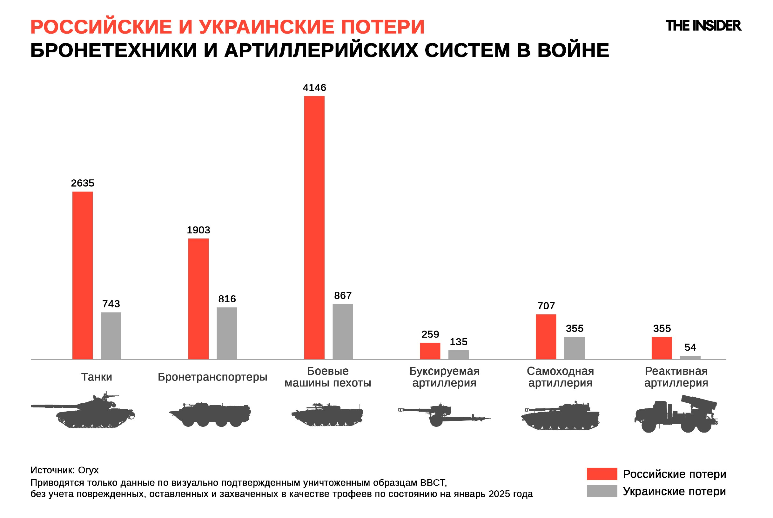 При учете исключительно уничтоженных образцов техники (без поврежденных, оставленных и захваченных в качестве трофеев) получается, что ВС РФ потеряли: